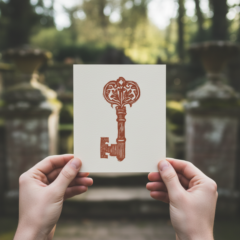 Medieval Key Linocut Original Artwork 5x7 Collector Piece