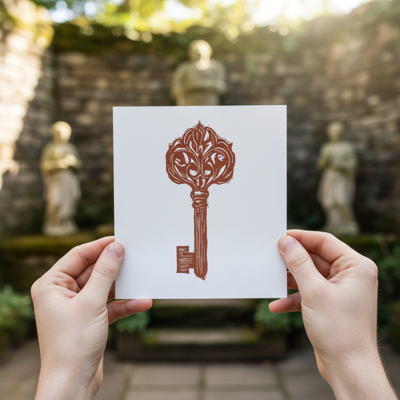 Ornate Key Linocut Original 5x7 Collector Print